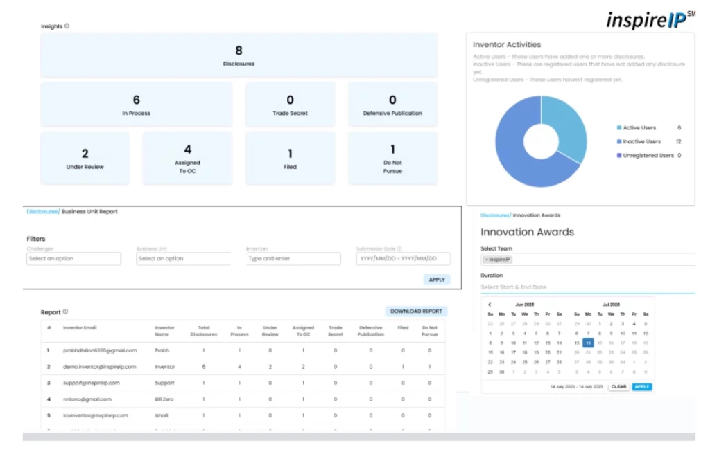 InspireIP is a lightweight innovation-to-IP system that helps you capture, organize, and protect your team’s best ideas without disrupting your workflow. Built for early-stage and scaling teams, founders, PMs, engineers, innovation leads, and fractional legal experts who want to track ideas, run innovation programs, and protect IP smartly.